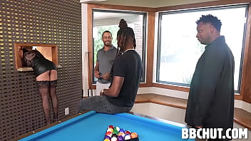Ebony Slut Masterbates, Gives Head, Lick Ass, Kiss Balls and Hand Job BBC For Massive Load